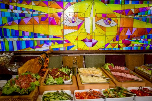 A hot and cold buffet breakfast is served every morning from 7:00 to 10:00 a.m.
